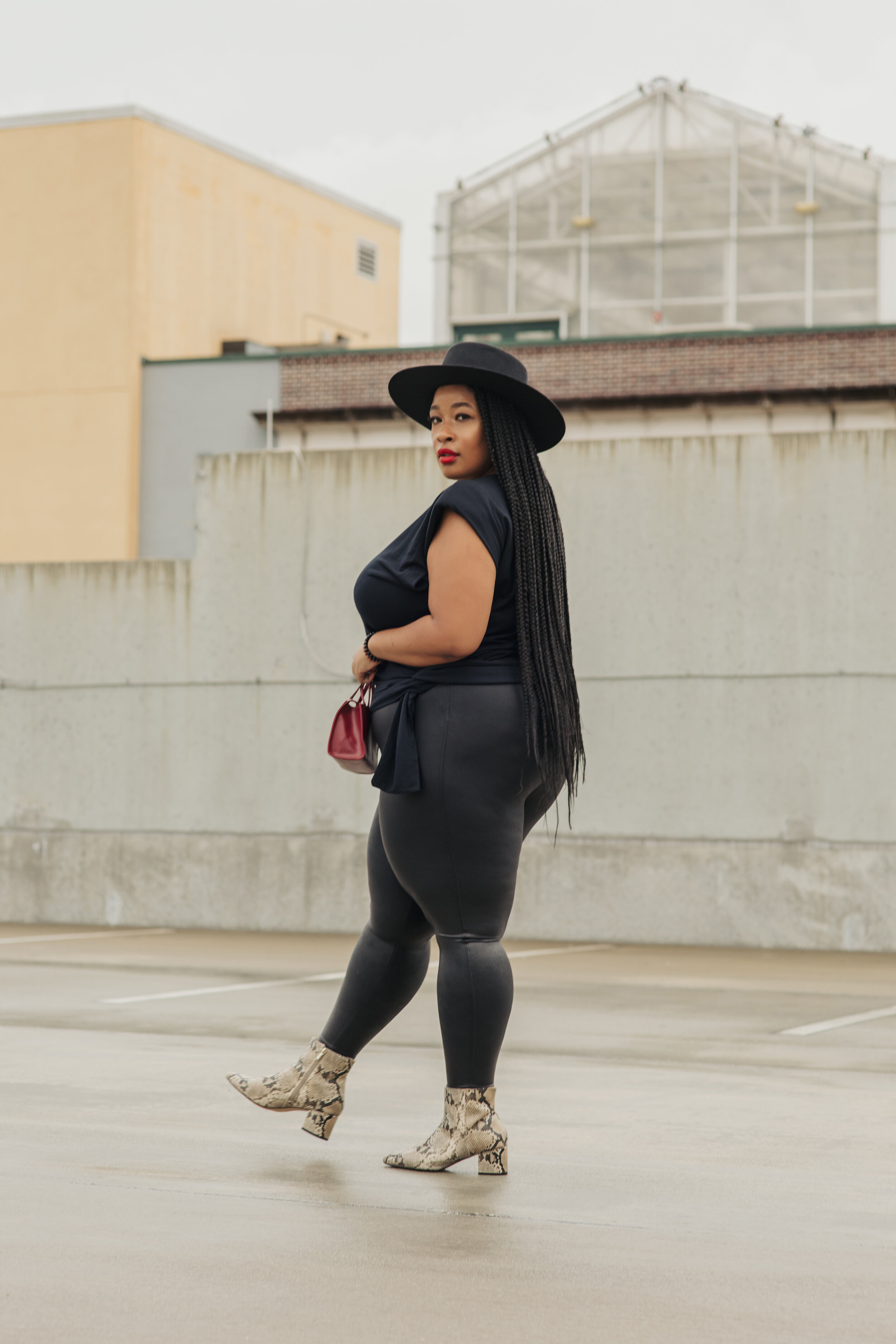 I also got the opportunity to try the faux leather pants and fell in love. I have a love-hate relationship with faux leather pants. Sometimes they’re too tight, or the fabric quality can be off and unforgiving. Nothing is worse than my cellulite showing through the fabric. Again, Spanx has super magical powers because these pants are perfect. You feel supported yet comfortable. They look good!